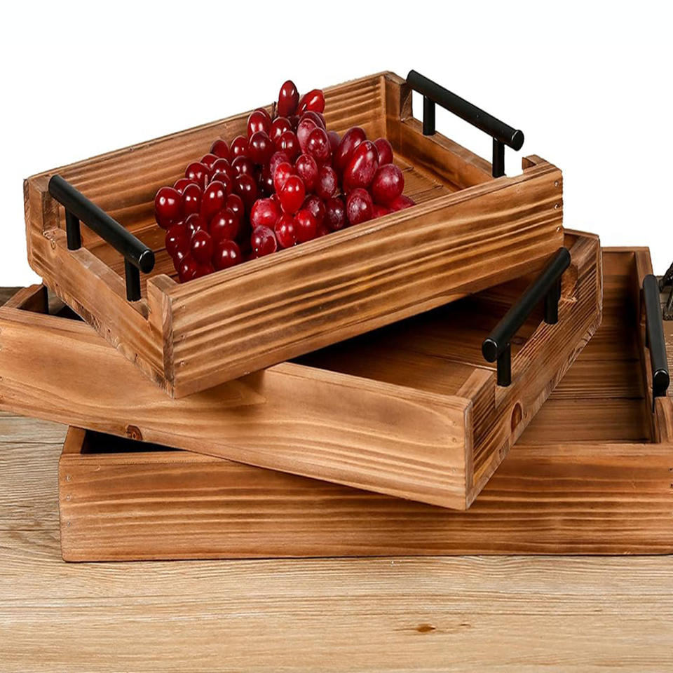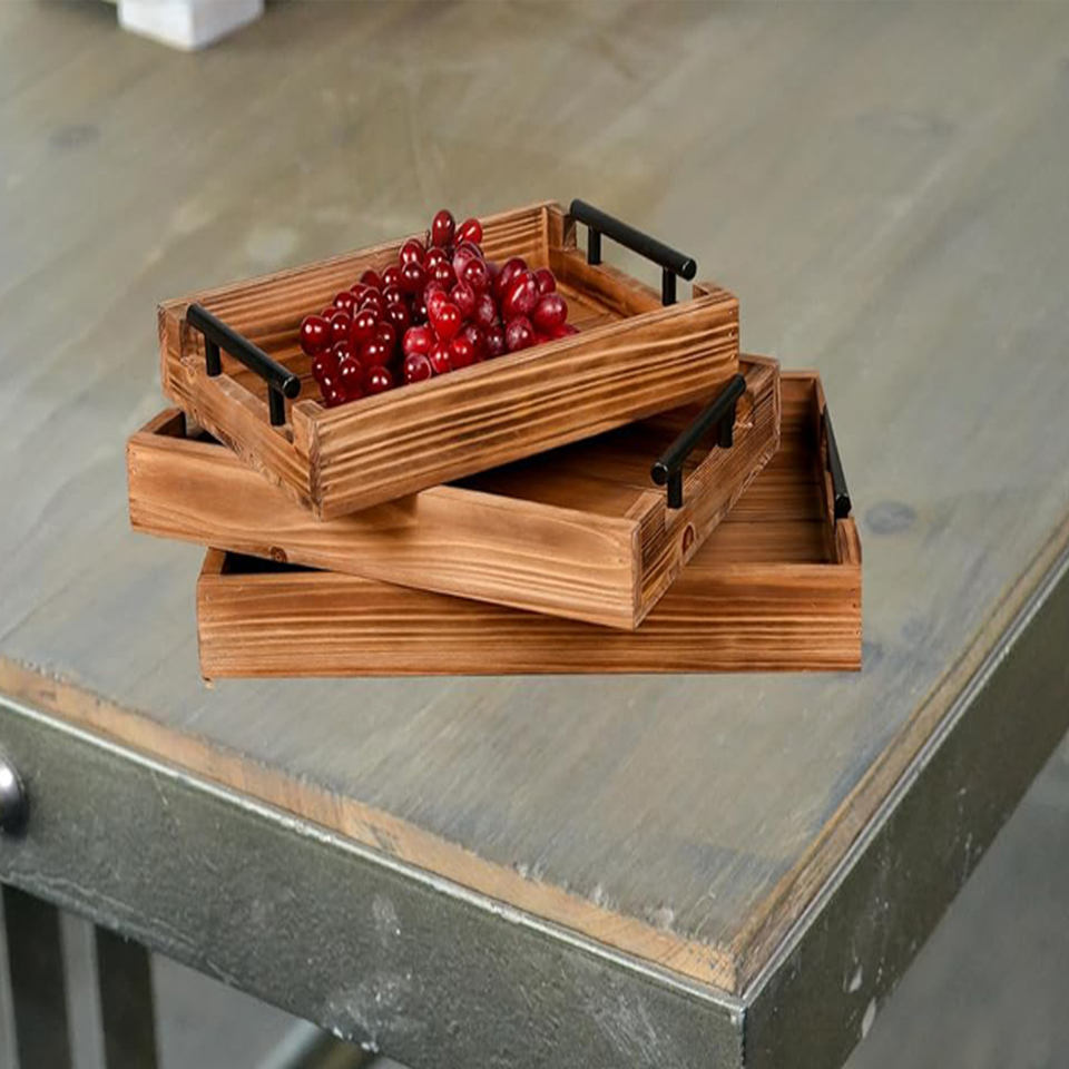 Product Name:Wooden Serving Tray with Handles l Set of 3