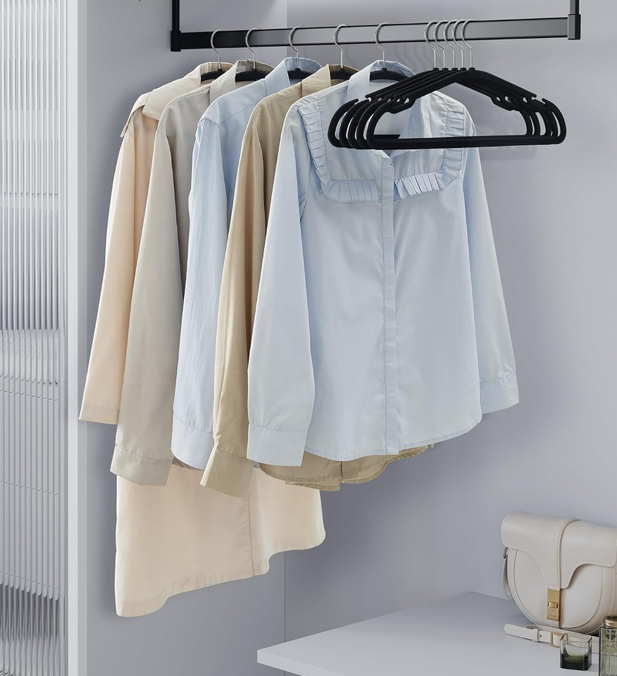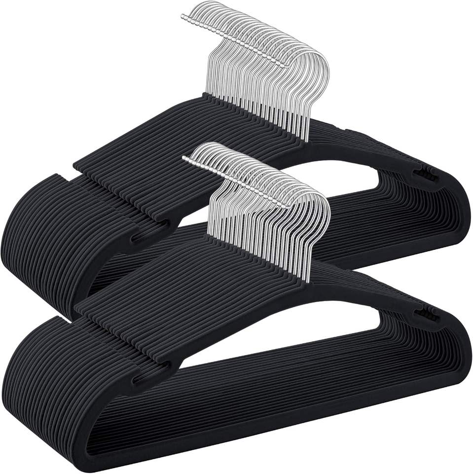 Pack of 50 Black Velvet Hangers Plastic Clothes Hangers 360 Swivel Hook Wide Shoulder Notches Space-Saving Closet Coats Jackets
