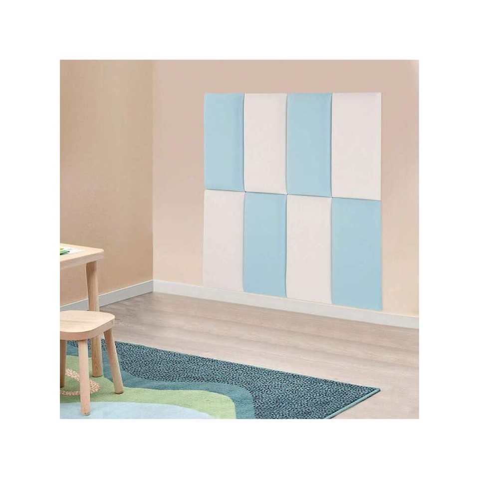 Pack of 8 Self-Adhesive White and Blue Wall Panels Soft and Thick Anti-Collision Wall Padding for Interior Walls