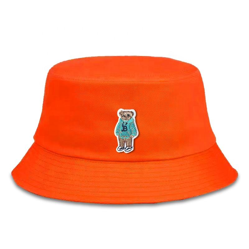 Exquisite Blue Embroidered Sunshade Bucket Hat Packable Sweatshirt Teddy Bear Fisherman Hat Custom Logo Fishing Casual Travel