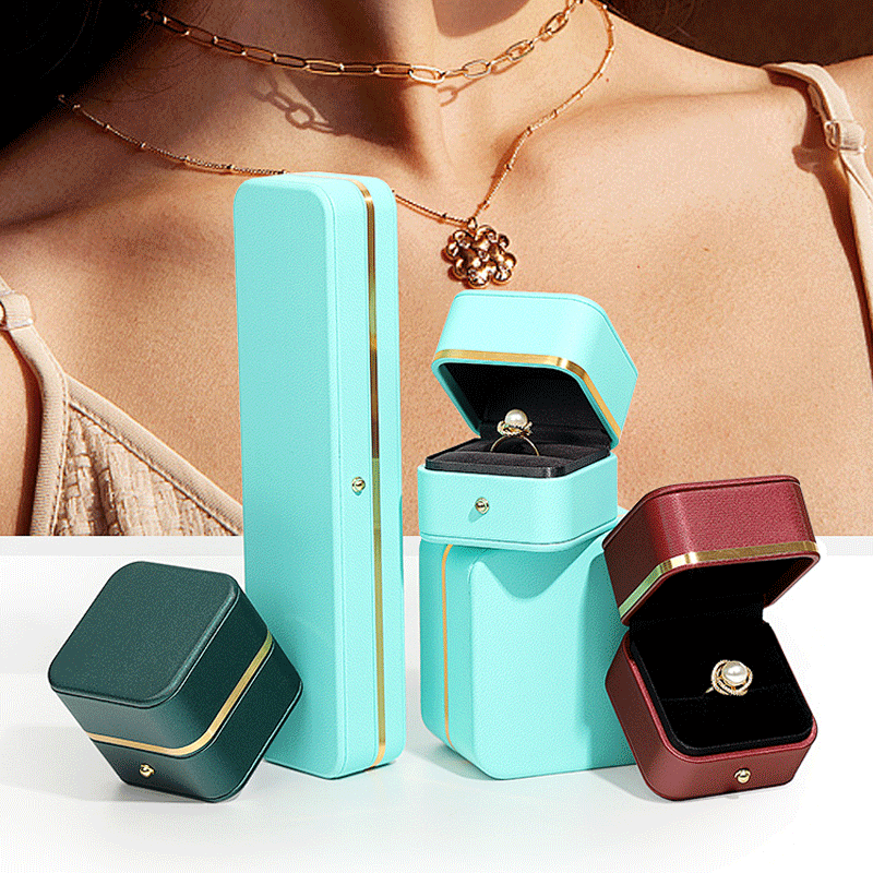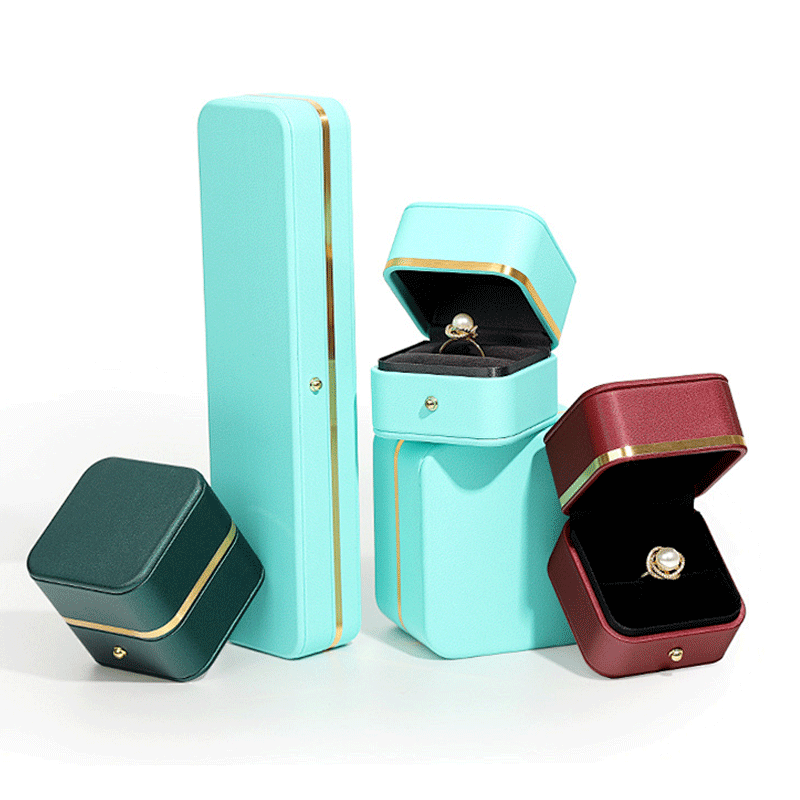 Packaging Box Luxury Jewelry China Wholesale Custom Shipping Personalized Blue Shape Elegant Microfiber-lined Wedding Ring Box