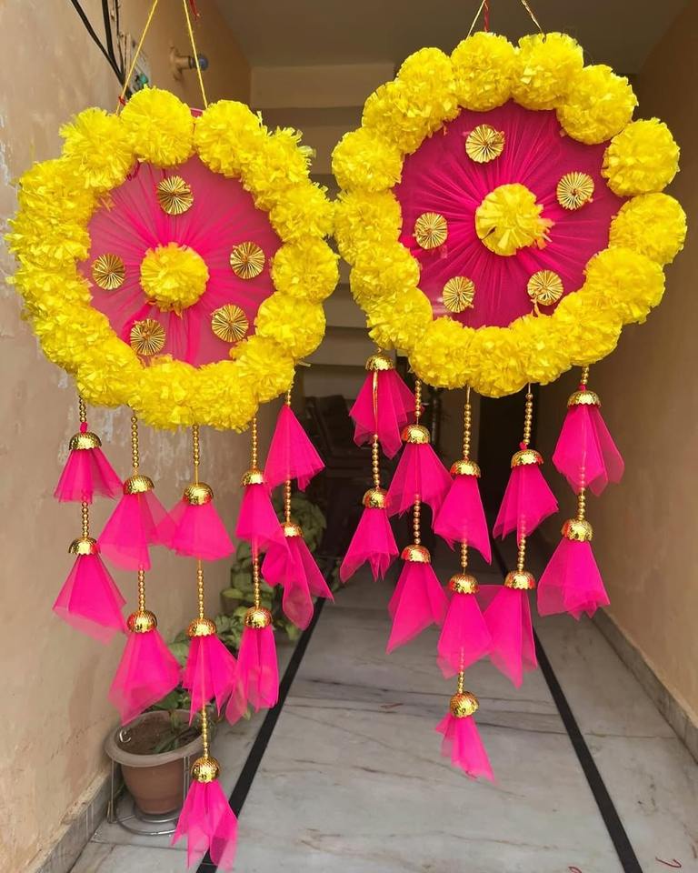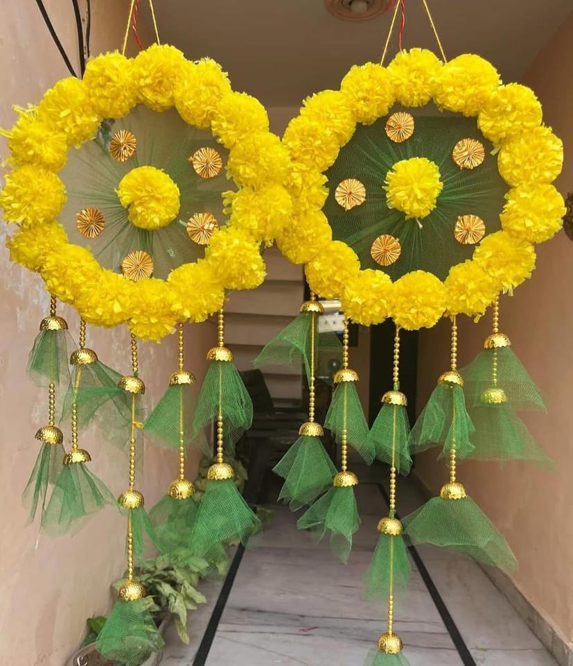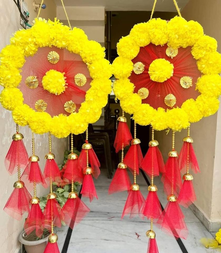 Product name:Marigold With Net Fabric Floral Wall hanging