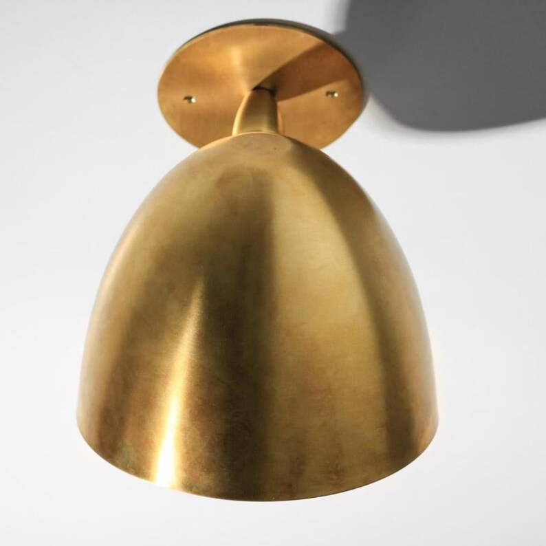 Pair of Modern Bell Shaped Sconces in Patinated Raw Brass Mid Century Wall Light Fixture for Living Room or Bedside Use