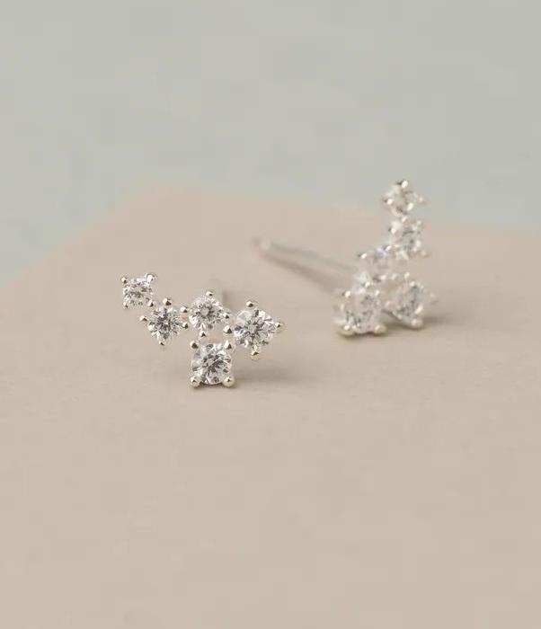 Pair of Tiny Diamond Cluster Stud Earrings,Minimalist Ear Climber,Dainty Silver Earrings,Perfect Wedding Jewelry,Bridal Gift