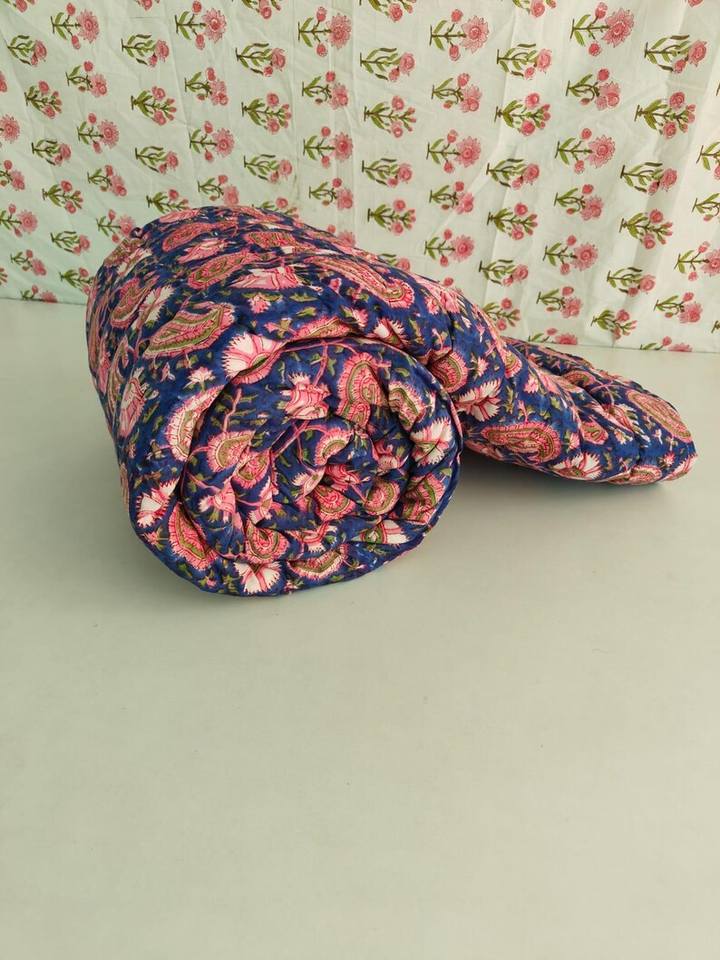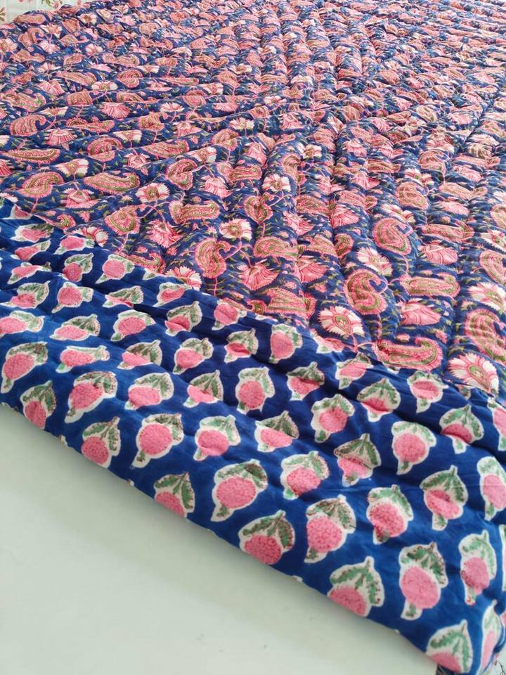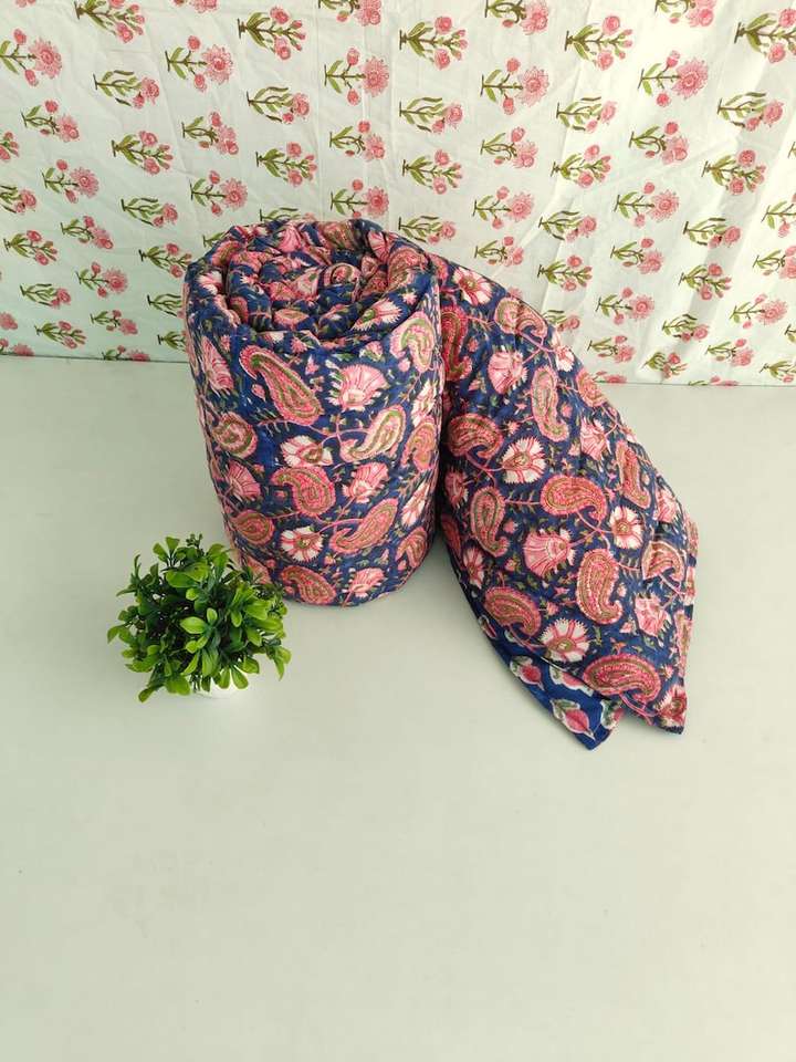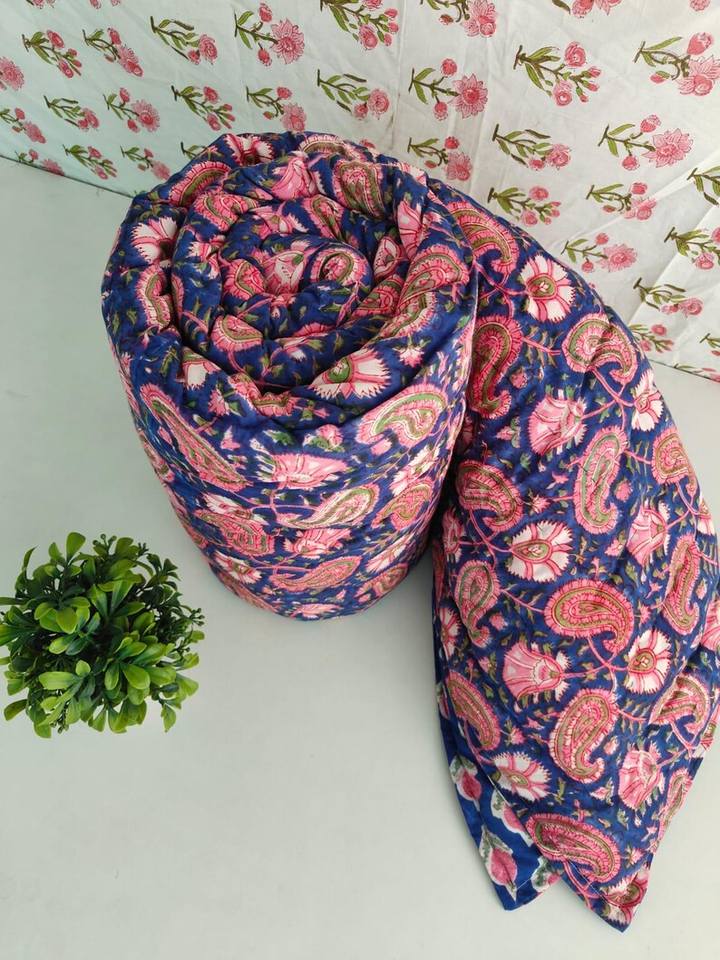 Paisley Block Print Cotton Razai Quilt Queen Size Boho Hippie Bedding