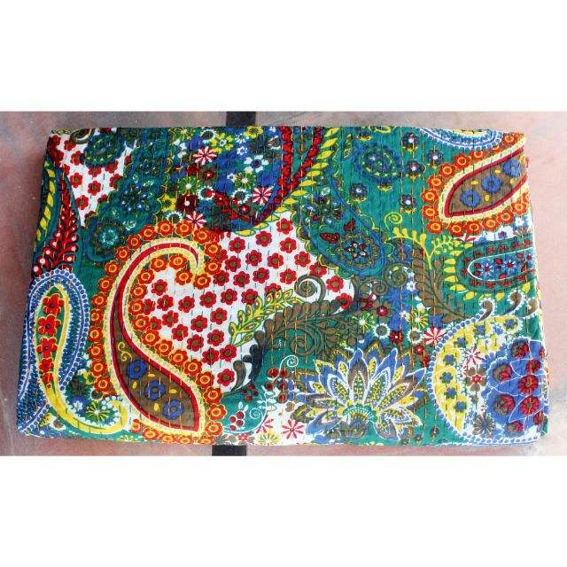 Paisley Print Kantha Quilt Reversible Bohemian Bedspread Ethnic Quilt Throw Blanket Decorative Filled with Cotton for Hotel Use