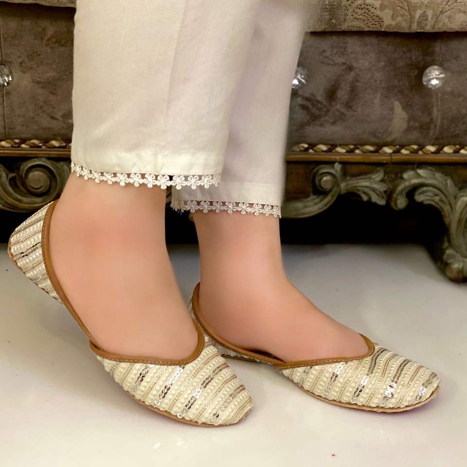 Pakistan Made Custom Manufacturing Handmade Fancy Indoor Casual Footwear Flat Leather Sole Soft Embroidery Jutti Punjabi Khussa