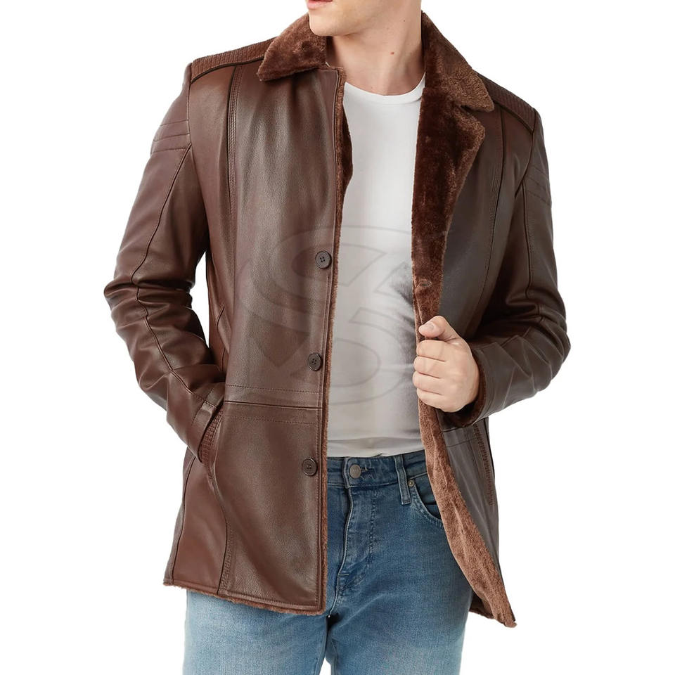 Pakistan Made Winter Men Genuine Leather Coat Designed With Soft Flexible Texture Providing Warmth And Modern Fit