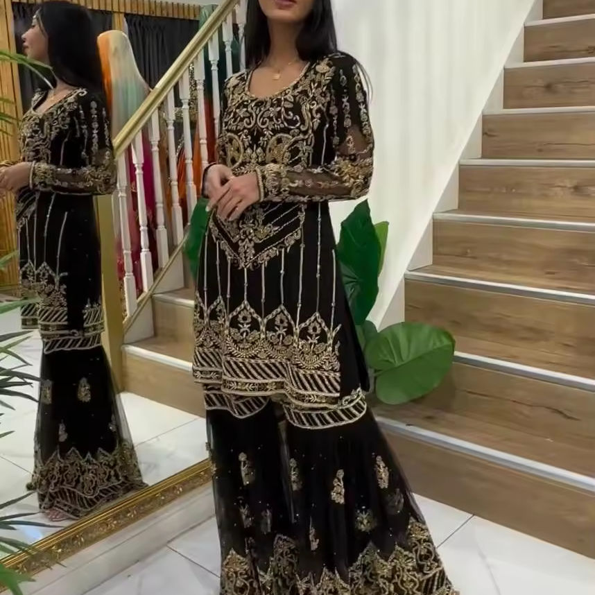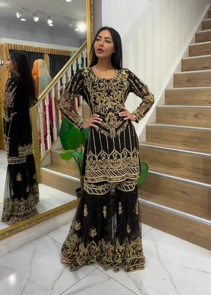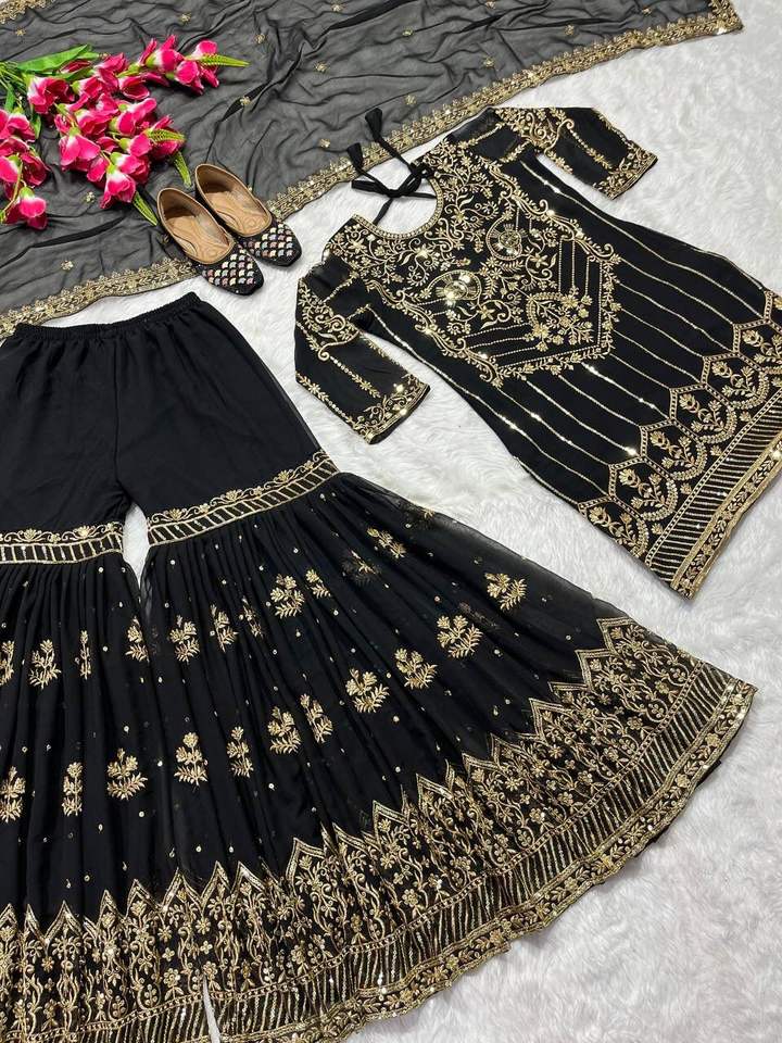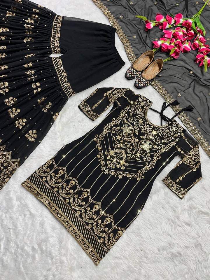 Pakistani Designer Party Wear Hevay Faux Georgette Fabric Top With Plazo and Net Dupatta Suit Premium With Sharara & Dupatta Set