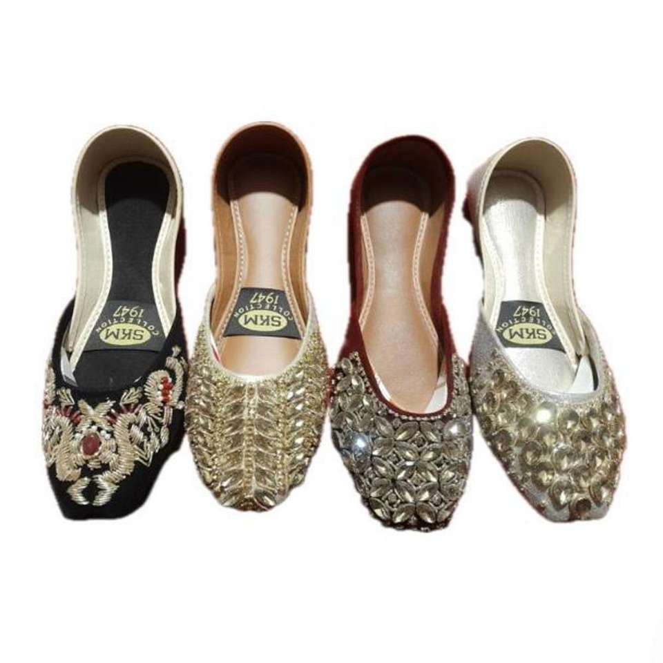 Pakistani Fancy Handmade Khussa Shoes for Ladies Top Embroidered Designs of Summer and Winter Flat Footwear for Women and Girls
