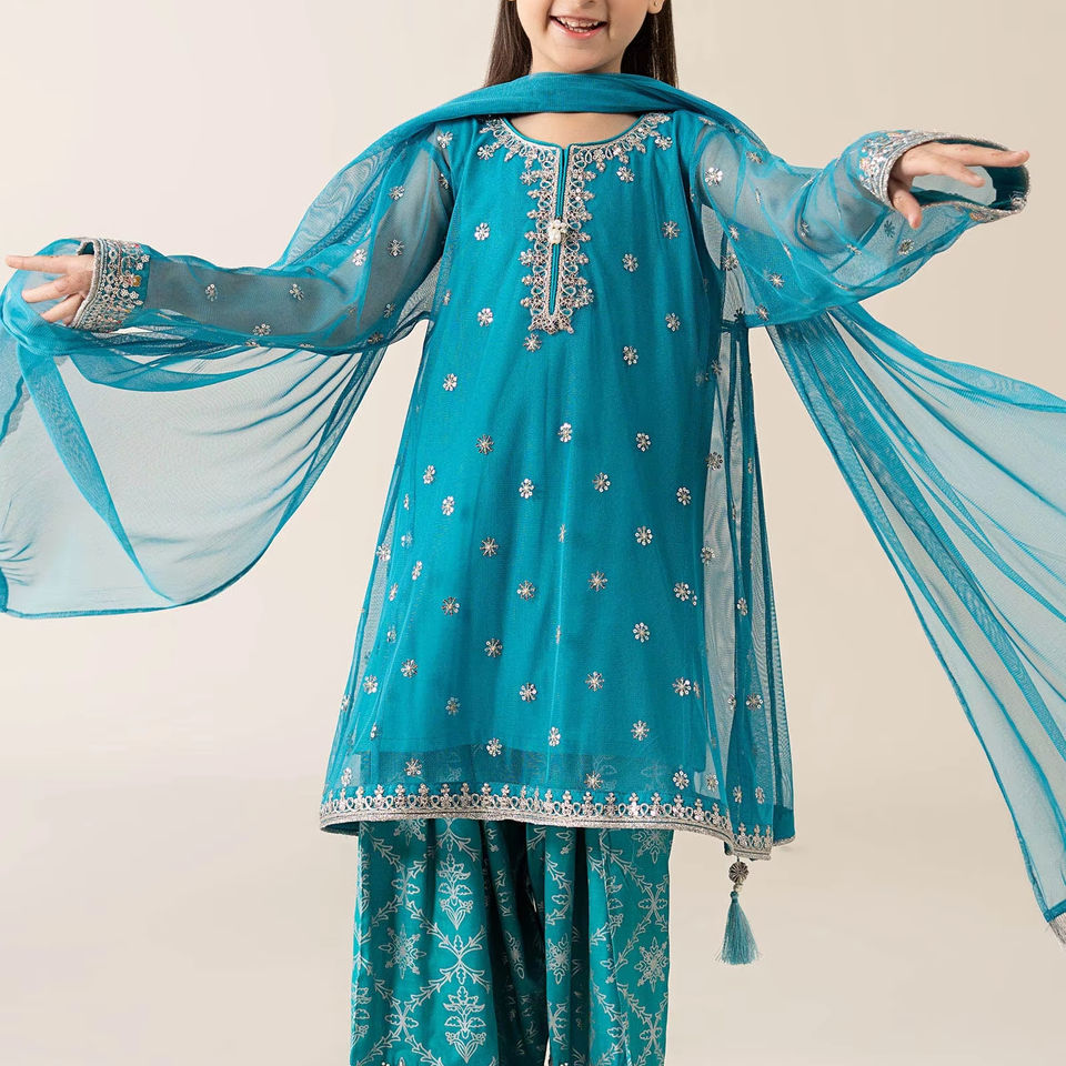 Pakistani Kids Girls Party Wear Fancy Lehenga Style Dress with Embroidery High Quality Acrylic for Wedding Festive Occasions