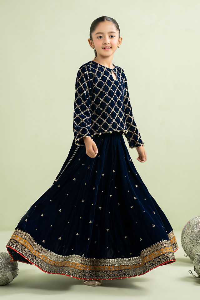 Pakistani Kids Girls Party Wear Fancy Embroidered Lehenga Choli Acrylic Fabric Wrinkle Free for Wedding Eid Special Occasions