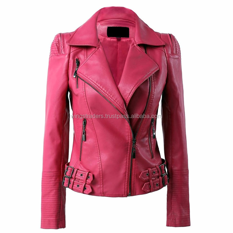 Type:2017 Latest Design Pink Ladies Leather Jacket