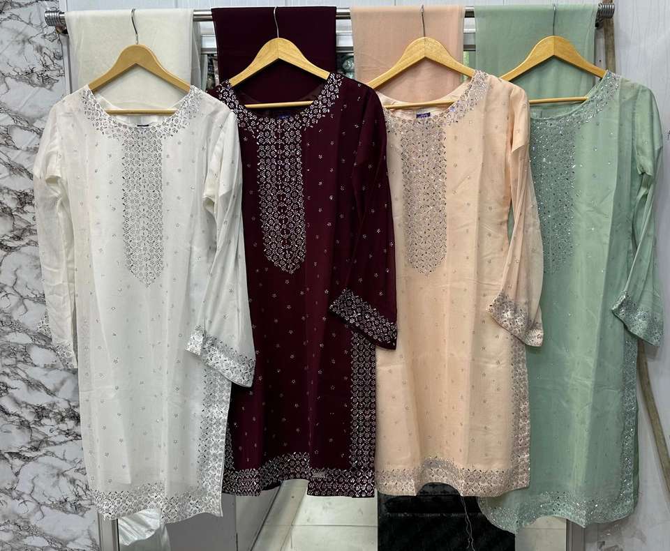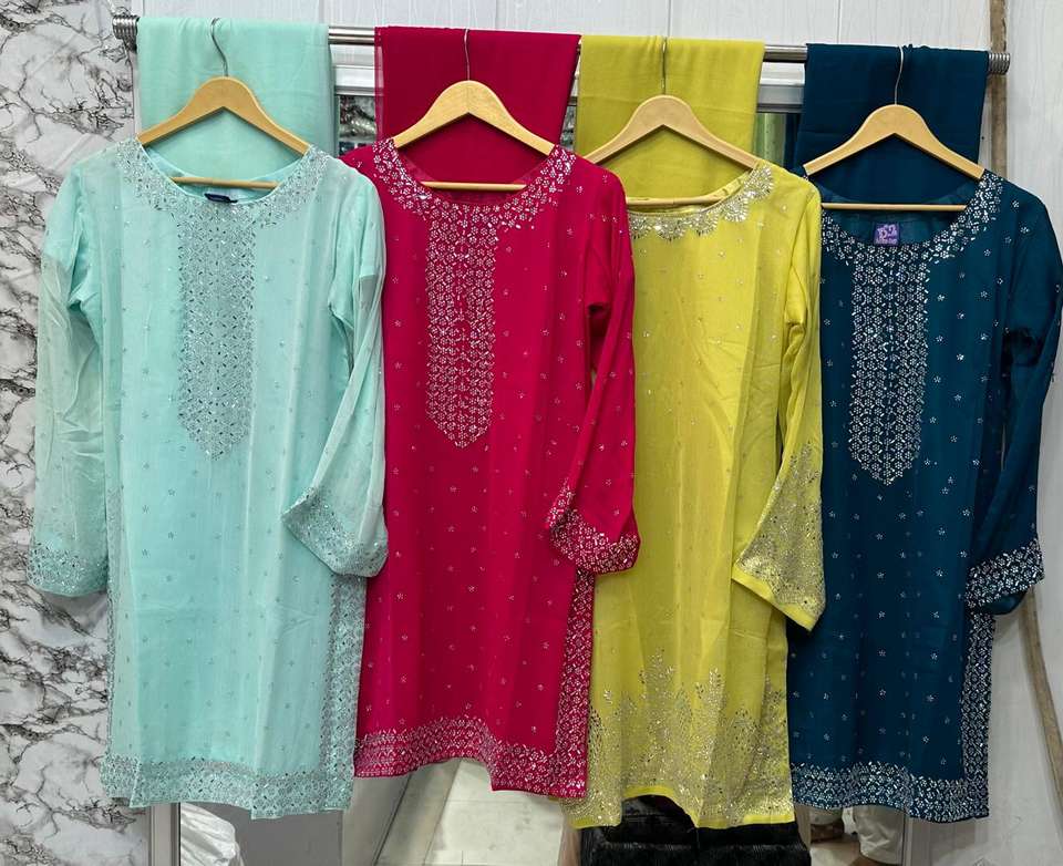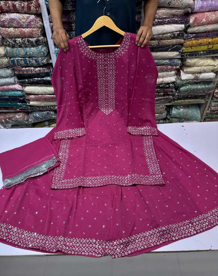 Pakistani Readymade Ethnic Wear Outfit for Women Sharara Kurti Set with Dupatta Indian Georgette Fabric Embroidery Work Weddings