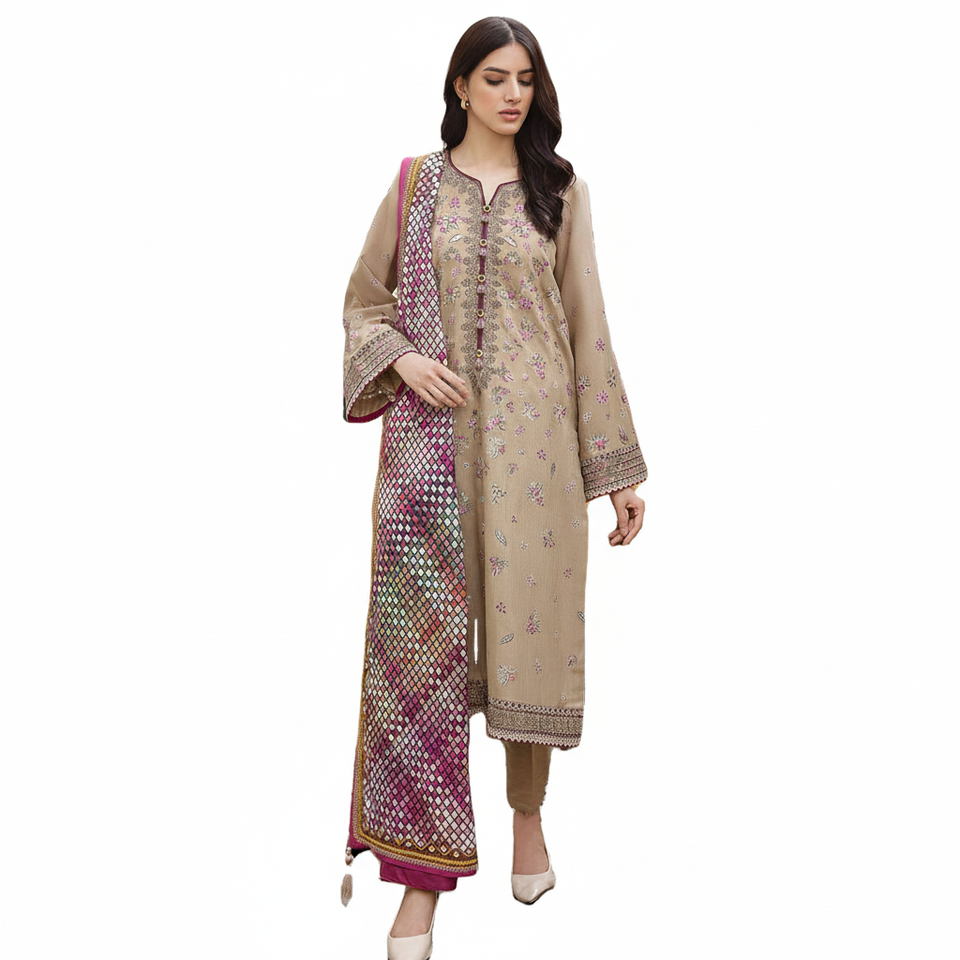 Pakistani Traditional Shalwar Kameez Women 3-Piece Embroidered Lawn Floor-Length Flared Trouser Organza Dupatta 4-Season Party