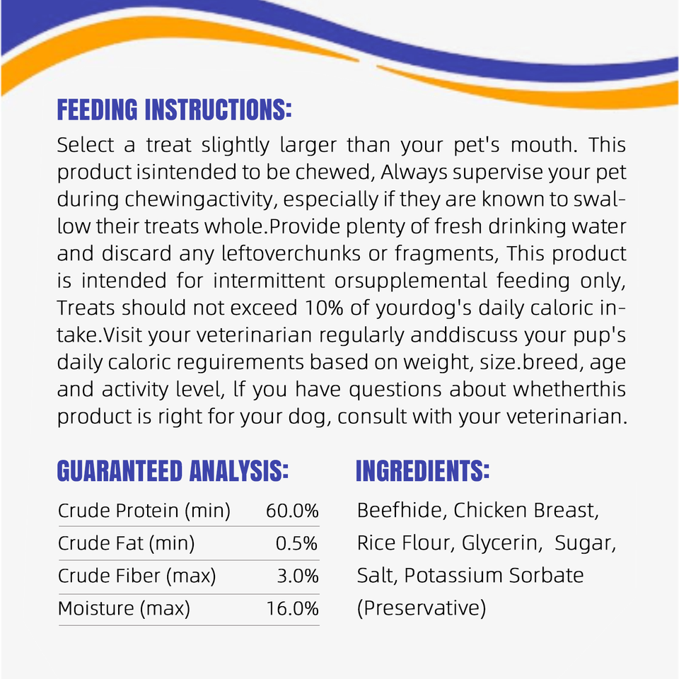 Beefhide, Chicken Breast, Rice Flour, GlycerinMain Ingredient