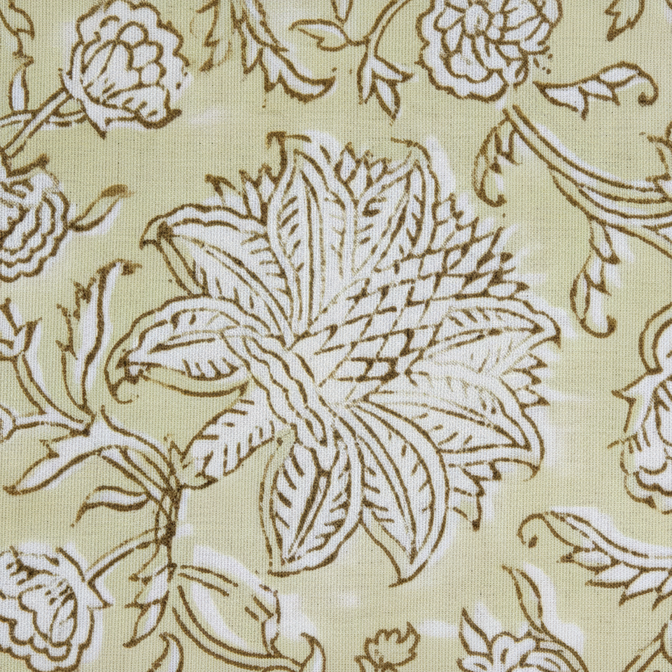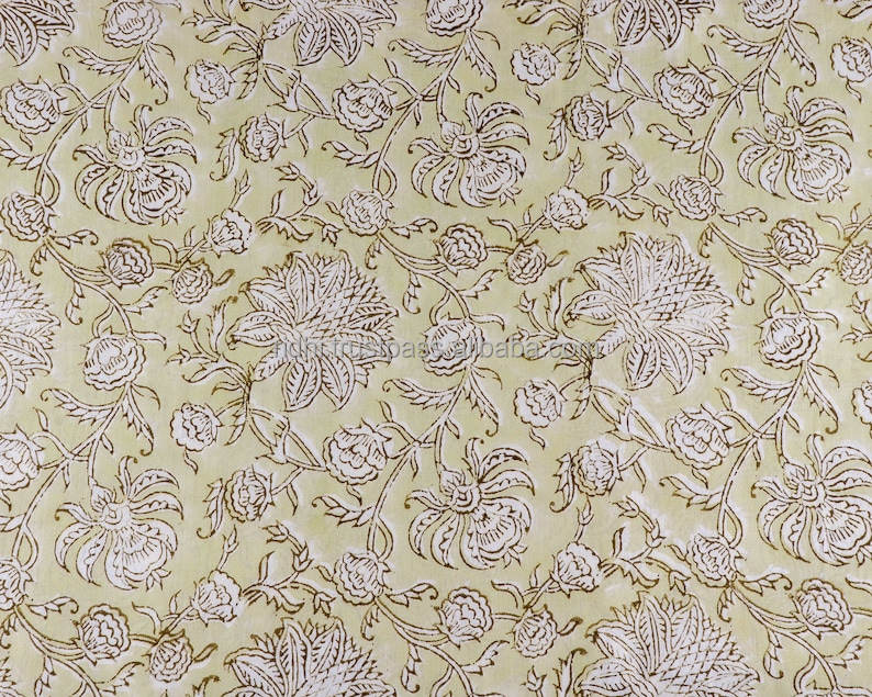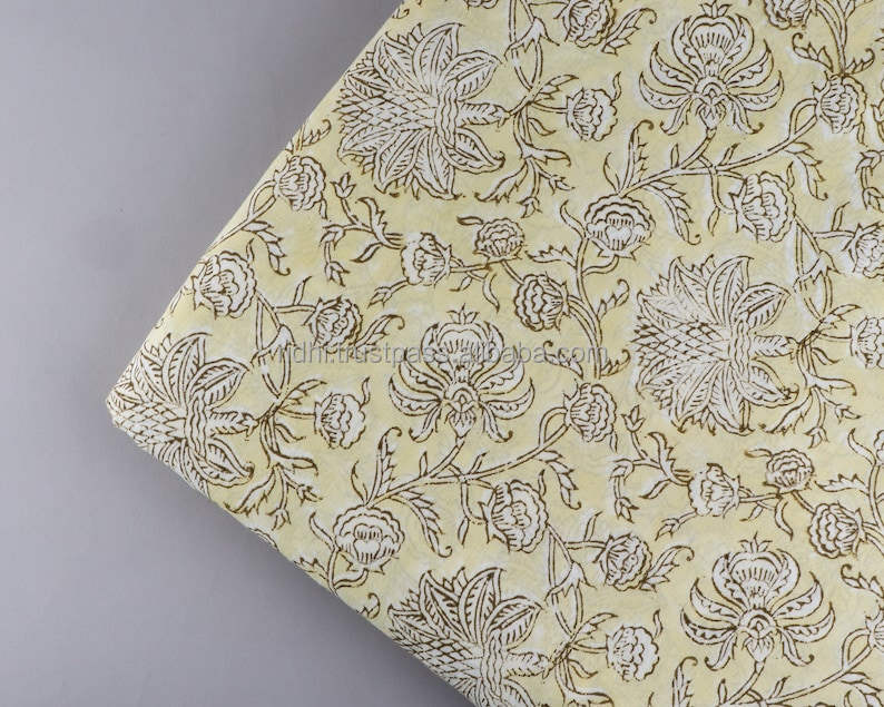 New Pale Goldenrod Yellow White Indian Hand Block Printed 100% Pure Cotton Fabric Yard for Women's Clothing Curtains Crafts Bags
