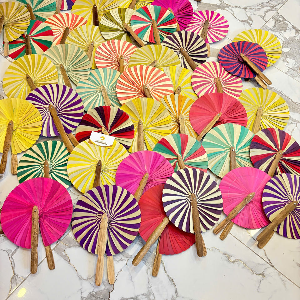 Palm Leaf Fan Handmade Palm Leaves Folding Decorative Fan For Wedding Party Souvenir Vietnam Logo As Required - Ms Violet