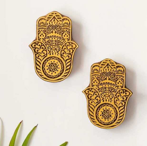 Product Name:Palm Pair Hand Carved Block Wall Decor In Sheesham Wood