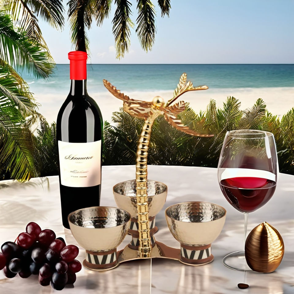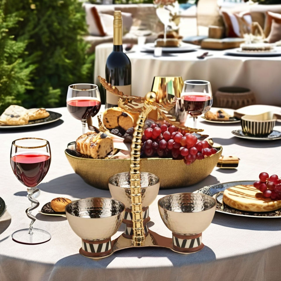 Arabic palm tree-inspired serving set with three metal bowls and a MOP base perfect for dates and Ramadan use
