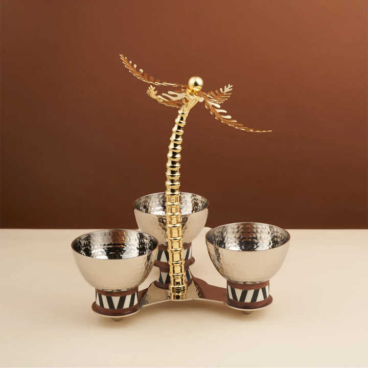 Name:Arabic palm tree-inspired serving set with three metal bowls