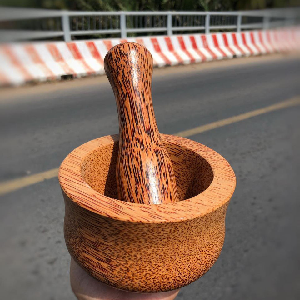 Palm Wood Mortar Pestle Set Mixer Coconut Wooden Grinding Tools Handmade Herb Grinder Eco Friendly Kitchen Gadgets