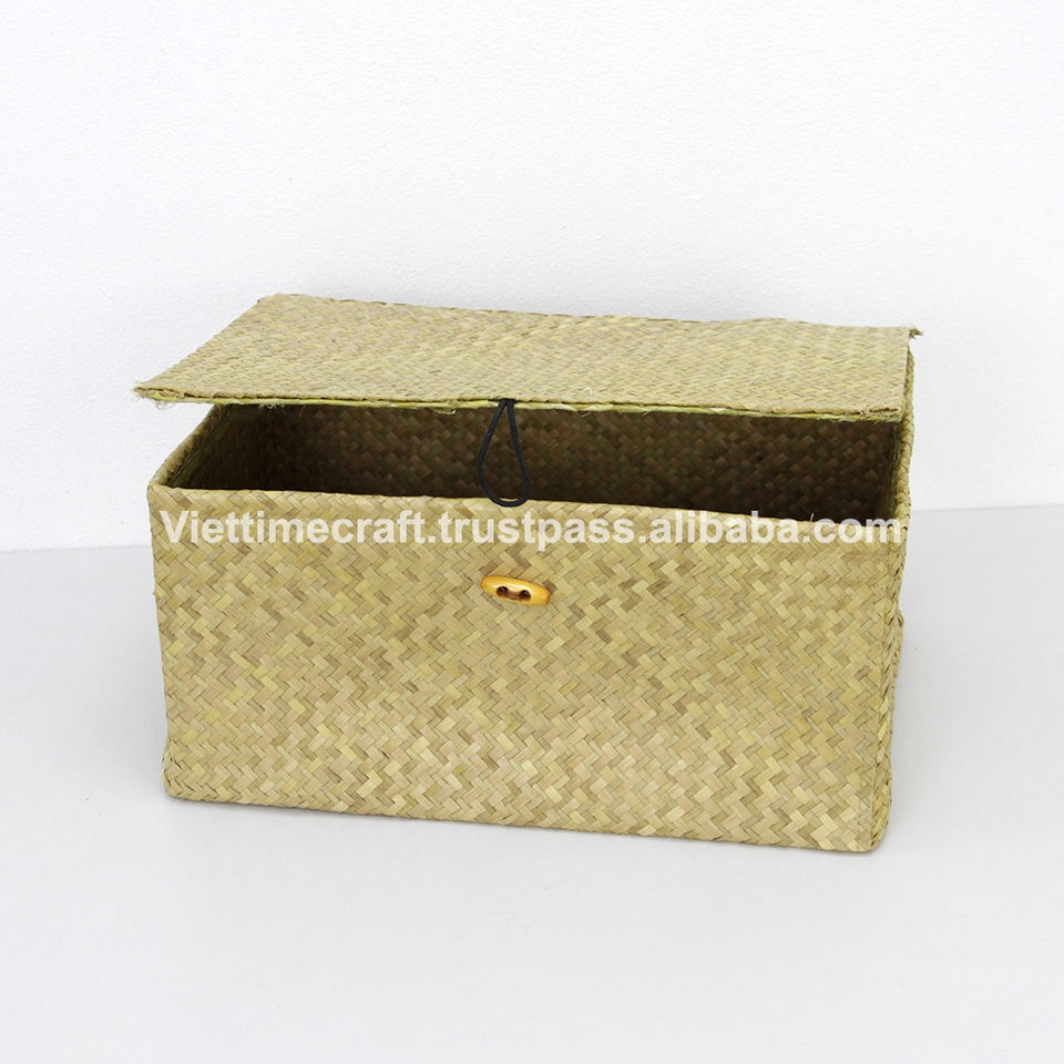 Palm Leaf Basket Box Set 2 Neat Home Storage Baskets Wholesale Straw Storage Baskets