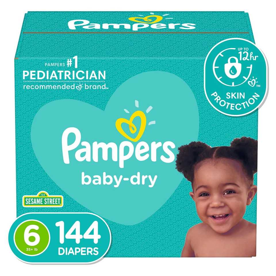 Pampers Baby-Dry Extra Protection Diapers, Size 6, 144 Count | up to 12 Hours of Dryness