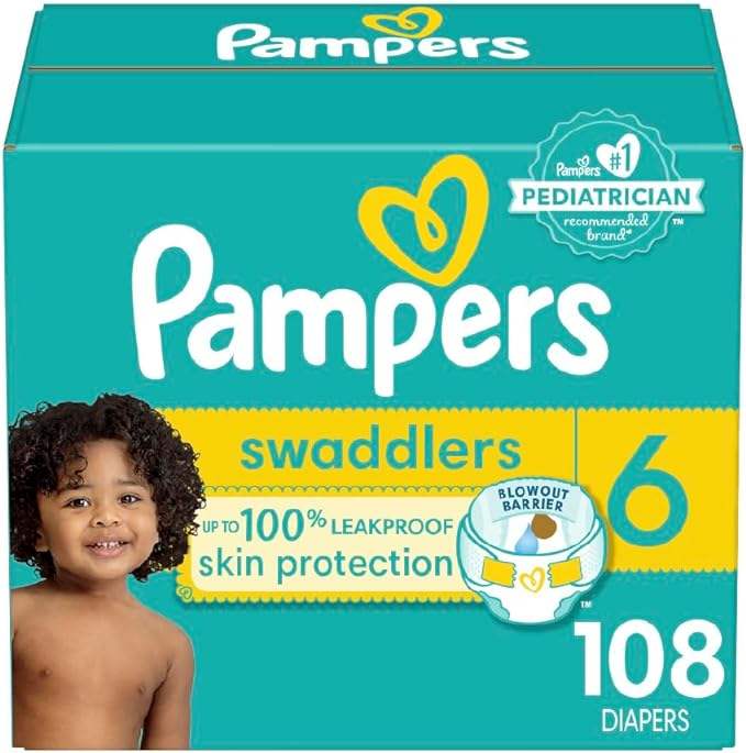 Pampers Swaddlers Diapers - Size 6, One Month Supply (108 Count), Ultra Soft Disposable Baby Diapers