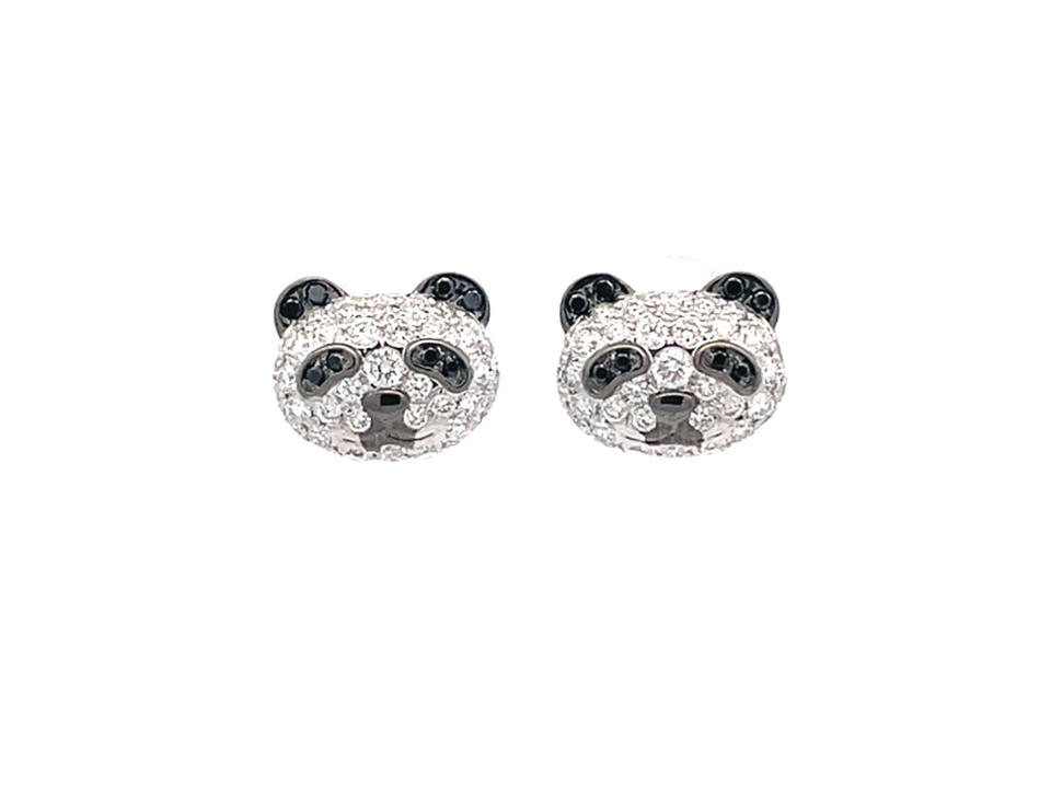 Panda Head Design Stud Earrings 925 Sterling Silver Bicolor White Black Diamonds Cute Animal Jewelry Women Accessory