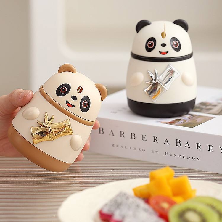Panda Style Push Button Toothpick Holder Automatic Pop Out Creative Household Container Caramel Black Plastic Durable