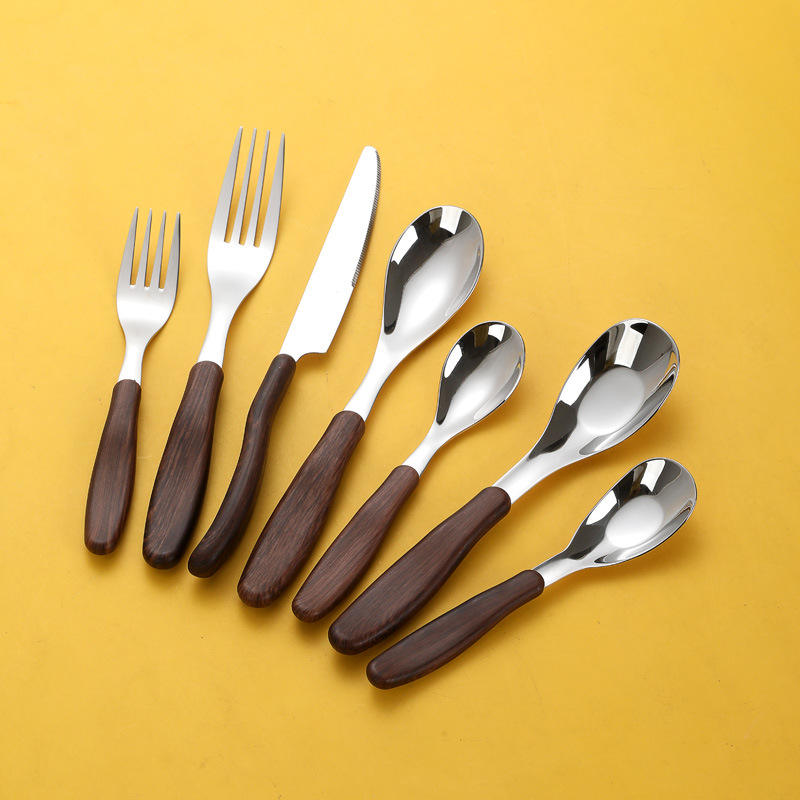 Pang Imitation Wood Handle Cutlery Set 7 Pieces 304 Stainless Steel Childrens Spoons Forks Knives For Kids Mealtime
