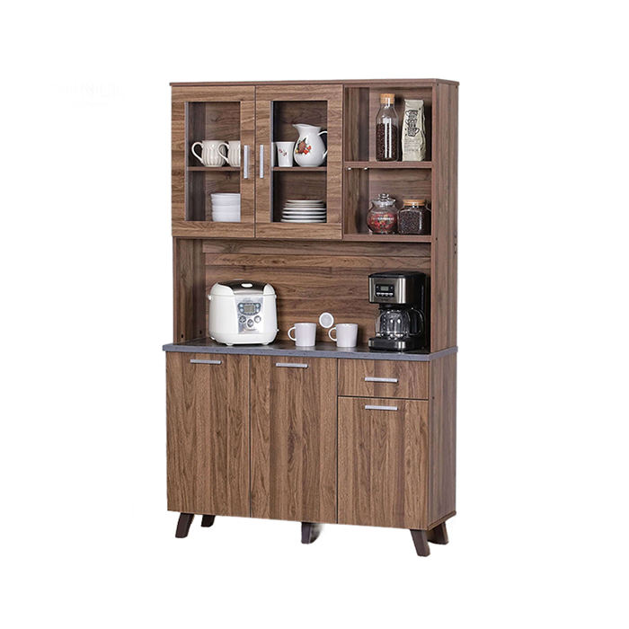 Pantry Kitchen Cabinet Walnut + Grey Marble Color K406 (A+B) Microwave Oven Stand with Shelves