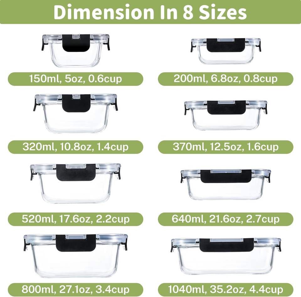Pantry Kitchen Storage Containers Glass Meal Prep Container for Lunch, Glass Storage Containers with Lids
