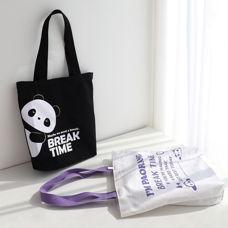 Paorang Eco Canvas Tote Bag White Solid Color Reusable Shopping Bag Lightweight Foldable Open Cute Cartoon Korea Style Women