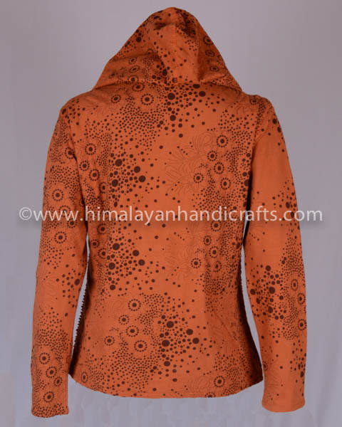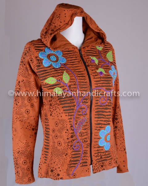 Papaya Orange Zipped up Floral Embroidered Bohemian Hoodies Jacket CSWJ 417A