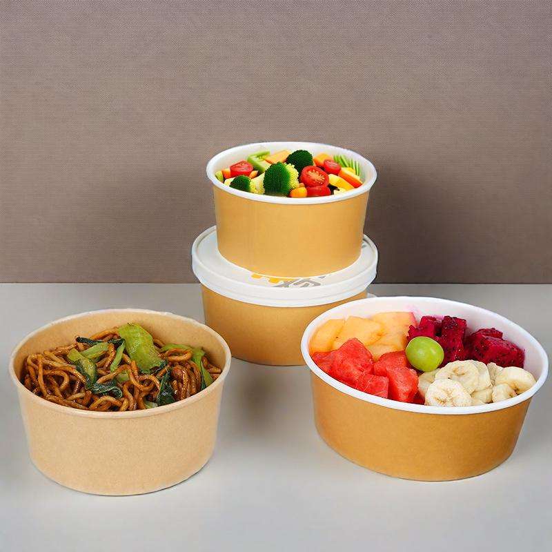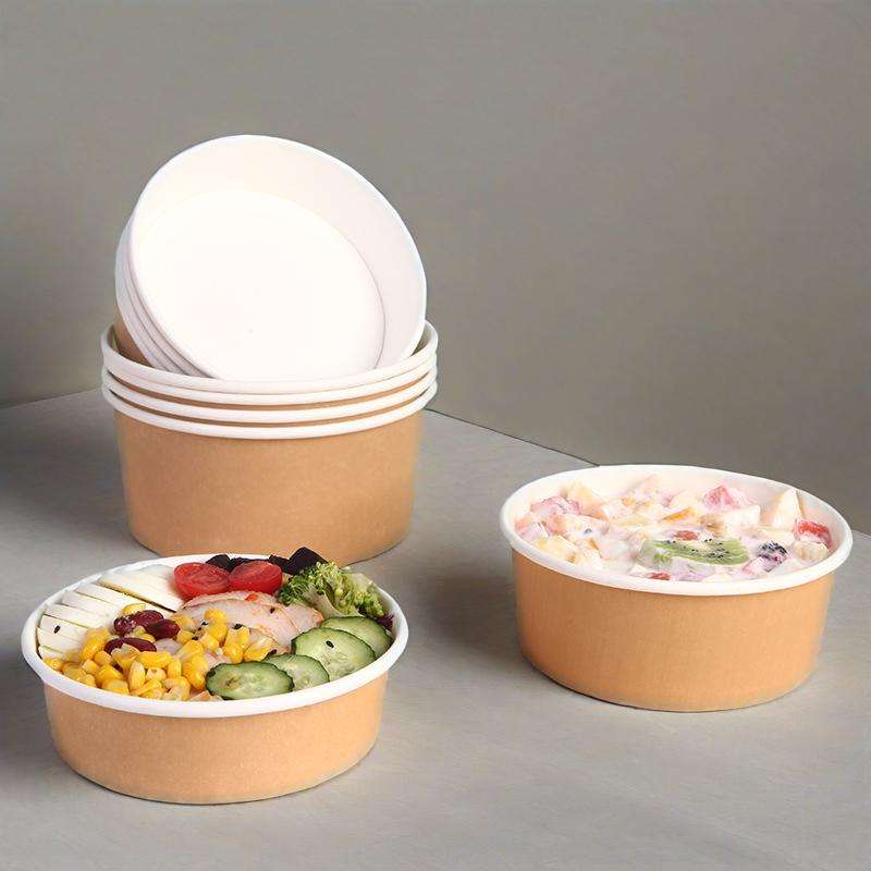 Paper Salad Bowl Craft Paper Food Eco Friendly Designed Microwavable Kraft Disposable Custom LOGO Printing Paper Food Container
