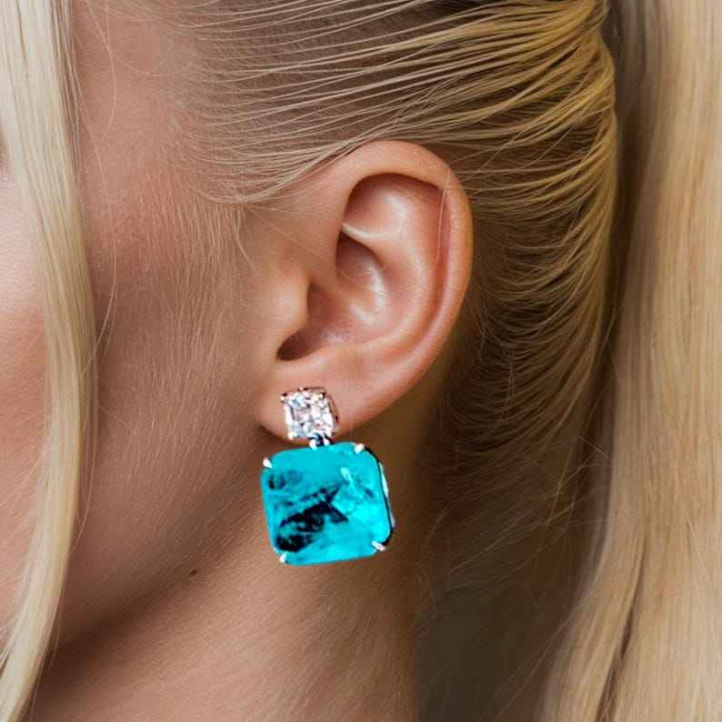 Paraiba Tourmaline Blue Dangle Drop Earrings 925 Sterling Silver Summer Beach Jewelry Birthstone Gift For Her Elegant Style