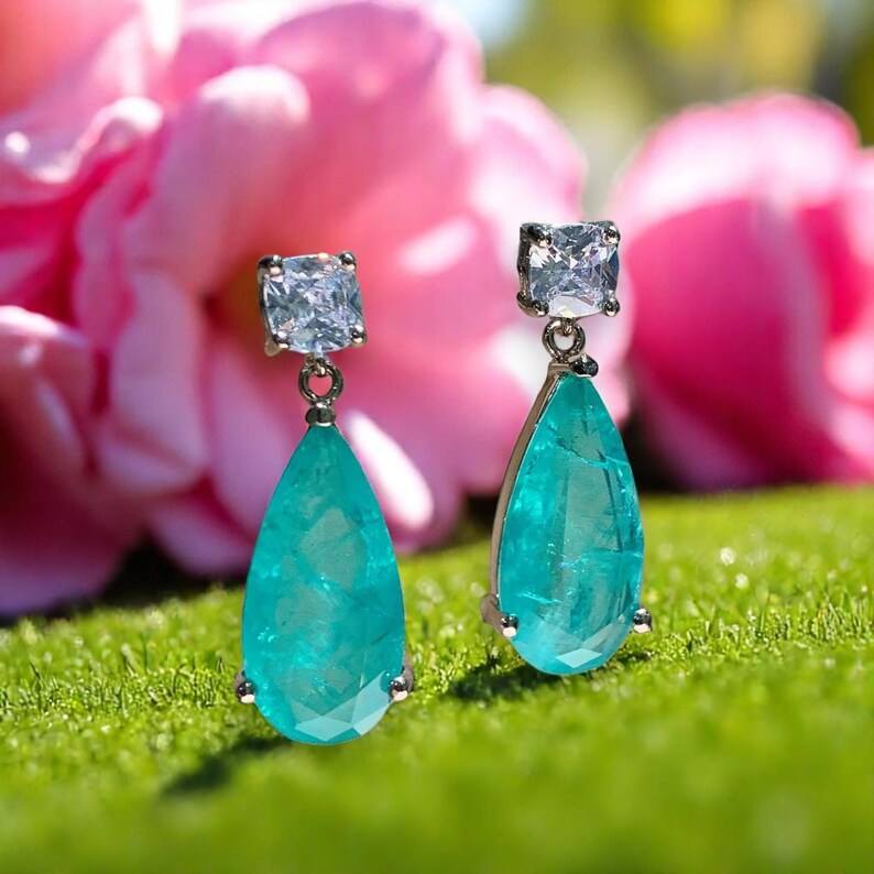 Keyword:Paraiba Tourmaline Stud Earrings Sparkling Gemstone Jewelry