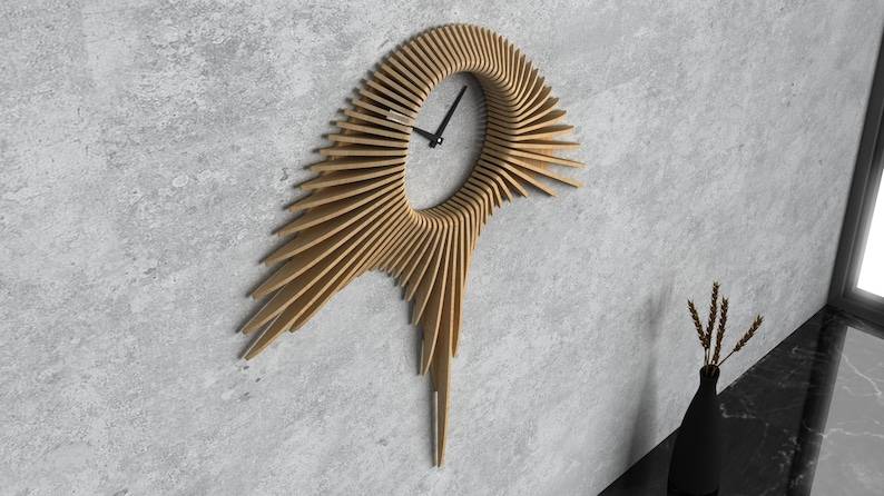 Art Deco Design Wavy Wooden Wall Decor 65 Clock CNC Digital Files for Precise Wood Cutting Crafting for Birthday Decorations