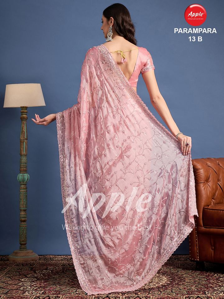 Parampara Burbarry Fabric Saree with Exquisite Embroidery Beadwork for Weddings Cultural Festivals Indian & Pakistani Clothing