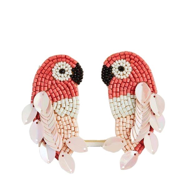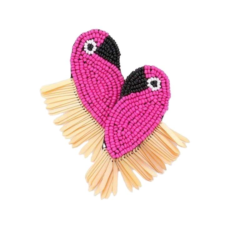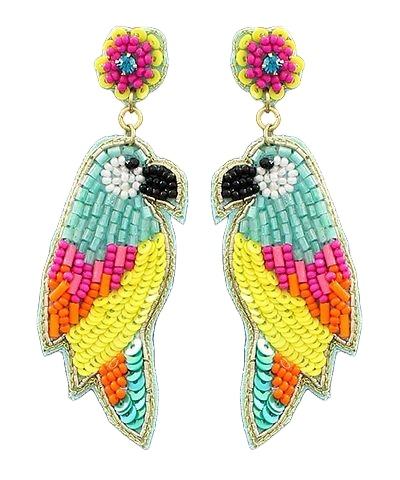 Elegant Women's Party Earrings with Hand Embroidered Parrots Design Multi-Beaded Fashion Jewelry