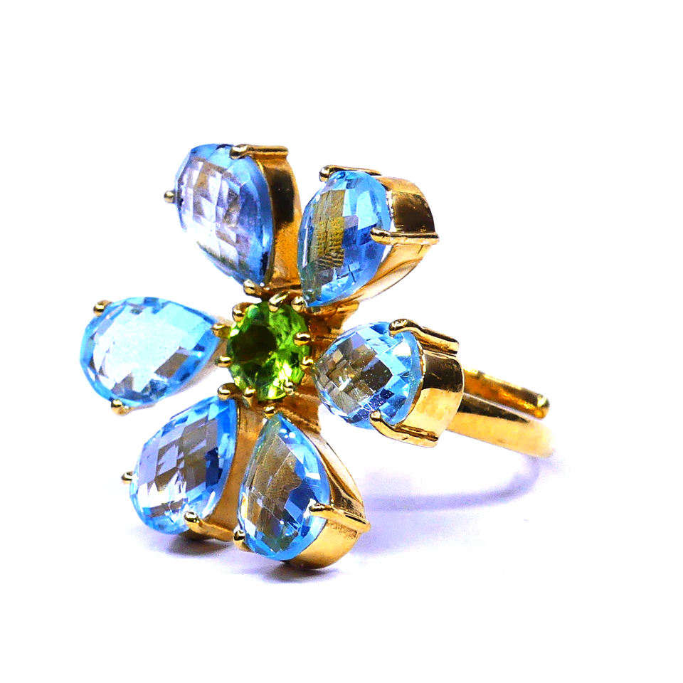 Party Wear 925 Sterling Silver Gold Plated Jewelry Blue Topaz Peridot Gemstone Women Wear Ring