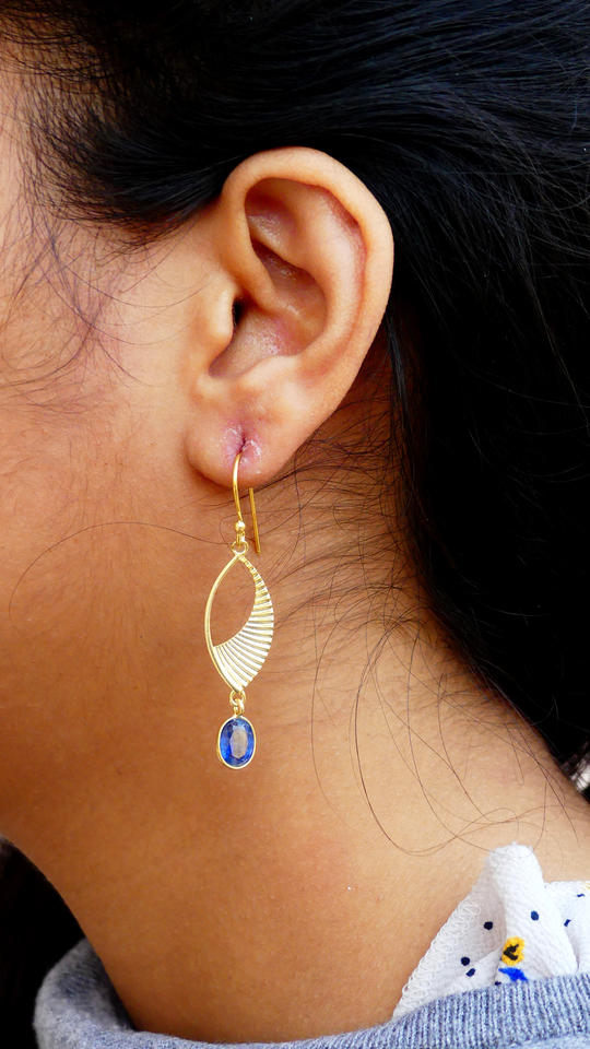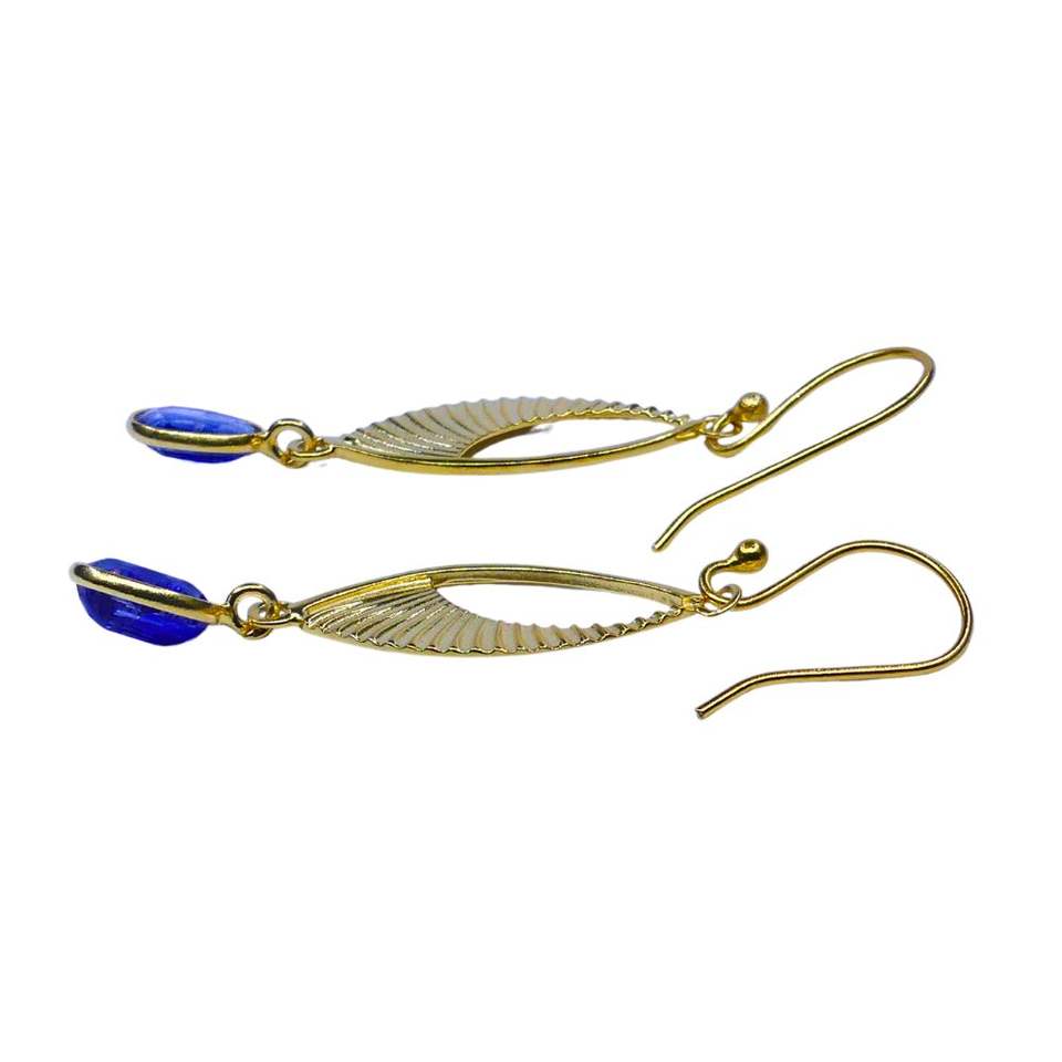 Party Wear 925 Sterling Silver Gold Plated Jewelry Kyanite Gemstone Women Wear Leaf Earring Set