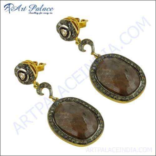Diamond & Sapphire Victorian Fashion Drop Earrings Gold-Plated Silver Party Wear Jewelry
