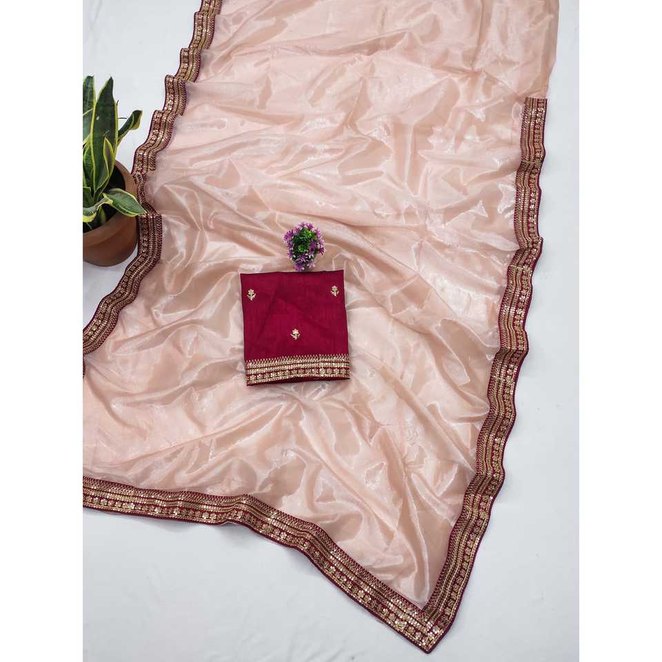 Sai Creation Purple Party Wear Embroidered Saree with Sequins Work Border for Prom Dresses
