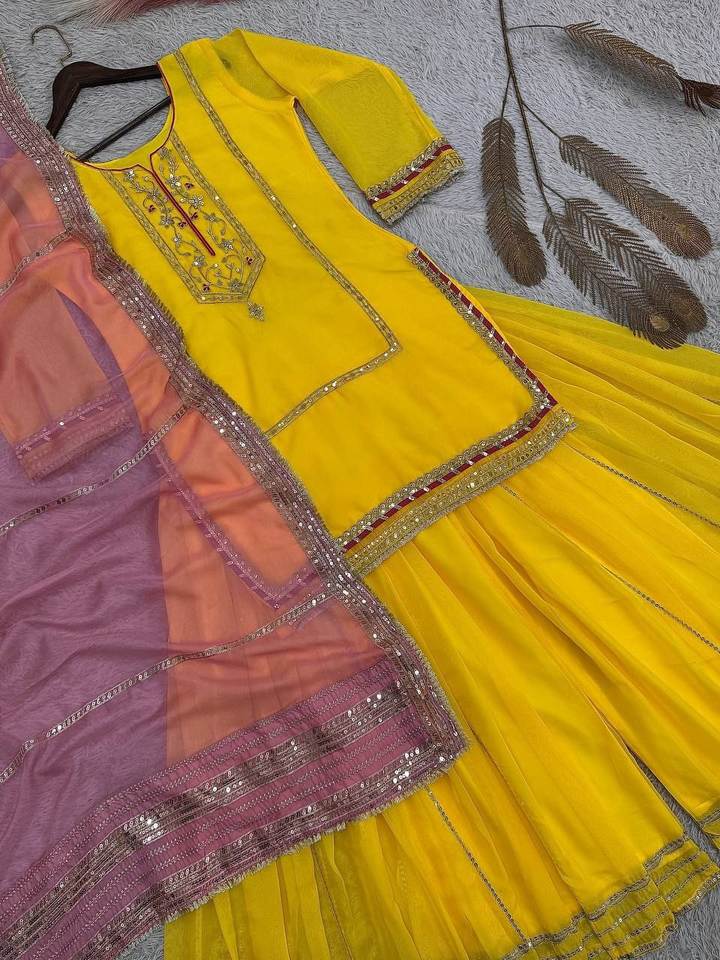 Party Wear Kundan Organza Silk Beautiful Embroidery And Sequence Work And Readymade Lace Border Top and Palazzo With Dupatta