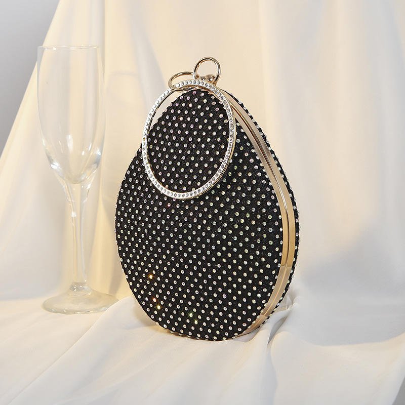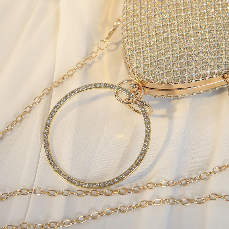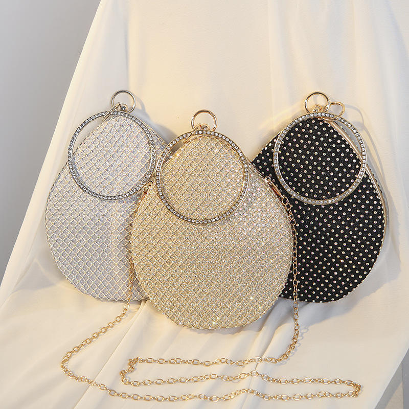Party Wedding Clutches Diamond Shaped Full Rhinestone Ring Lift Evening Bag Banquet Chain Crossbody Bag for Women