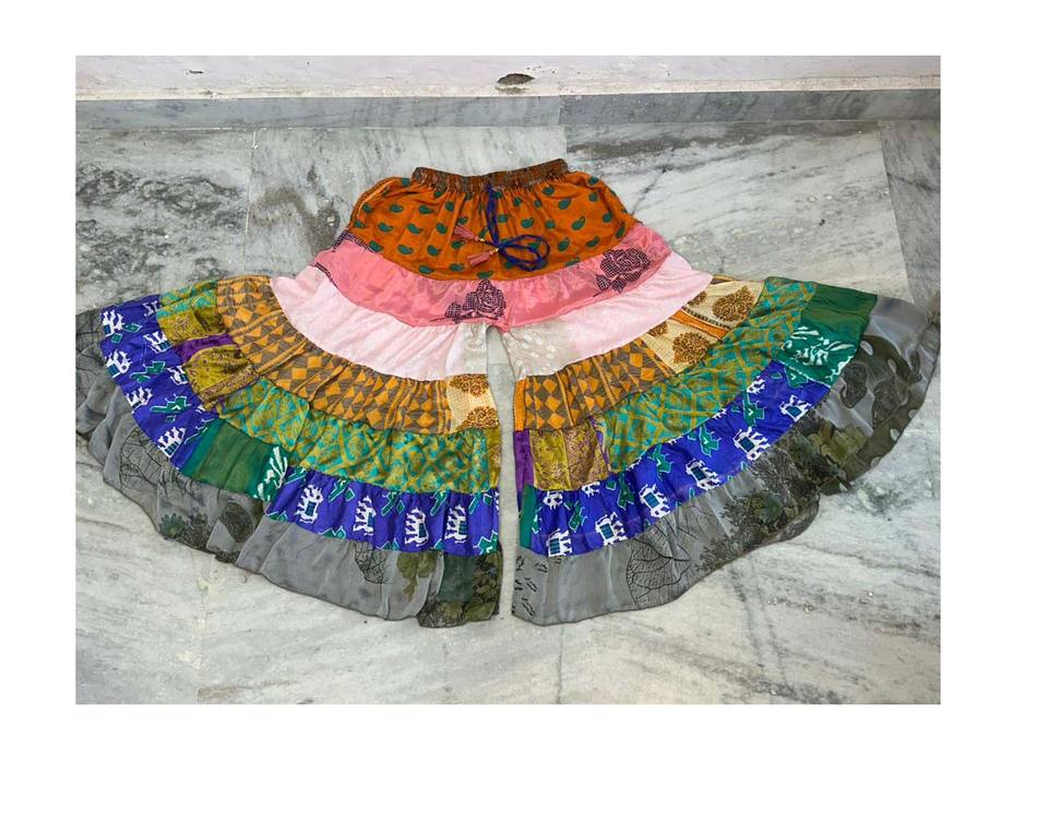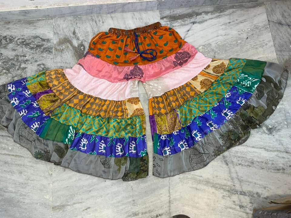 Partywear Silk Layer Patchwork Women Trouser Pant, Recycled Sari Silk Wide-Leg Pants, Summer Funky Ethnic Boho Hippy Patchwork