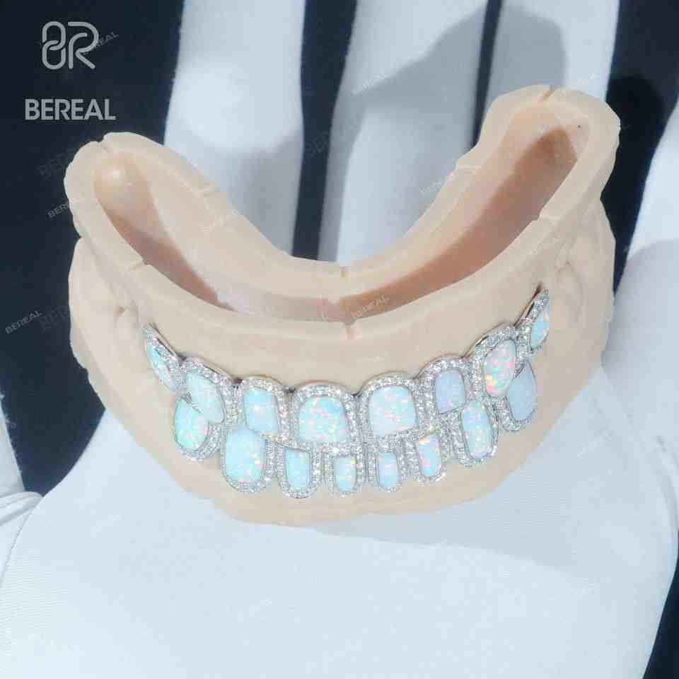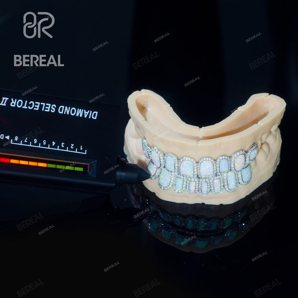 Pass Diamond Tester Moissanite Grillz Hip Hop Style Iced Out 925 Silver Vvs Diamond Opal Teeth Grillz Jewelry Men Women